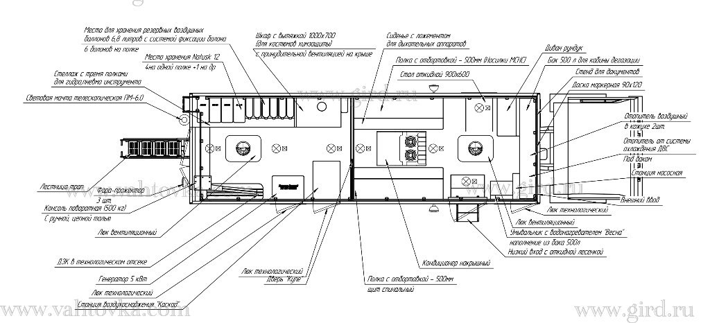 Люк технологический в технологическом отсеке оборудован качественным и надежным замком и окантован тройным контуром высококачественного уплотнителя, для подключения станции воздухоснабжения «Каскад». (Обслуживание станции воздухоснабжения «Каскад» производится из технологического отсека) |