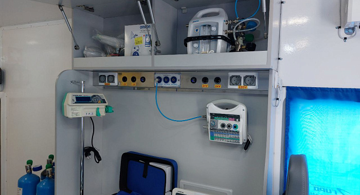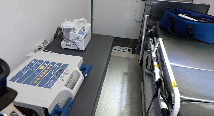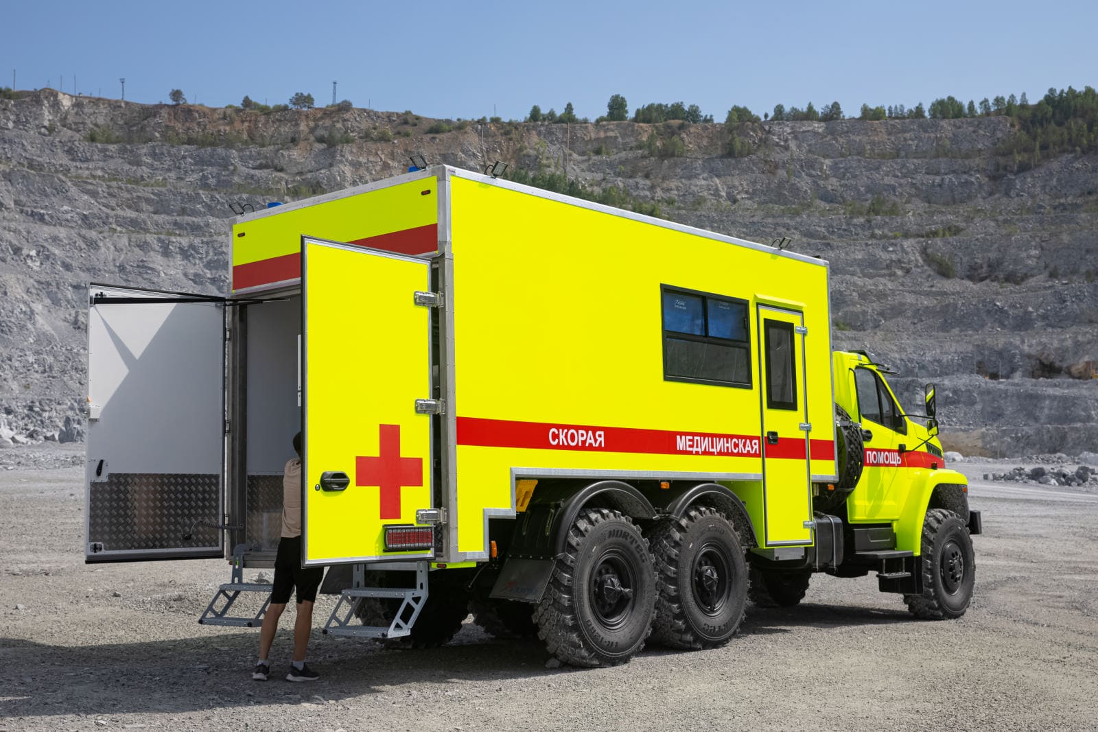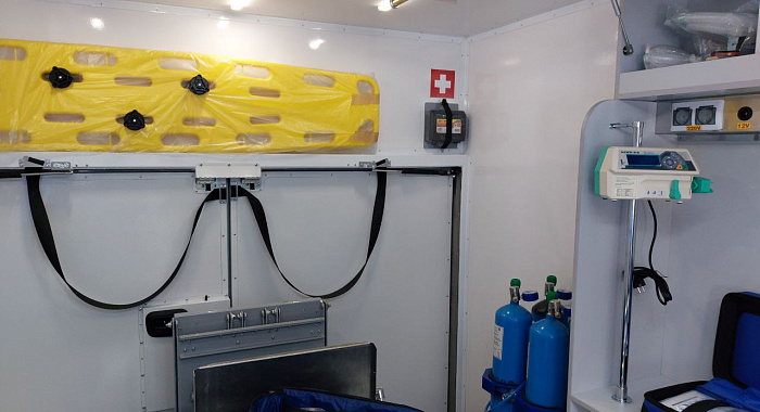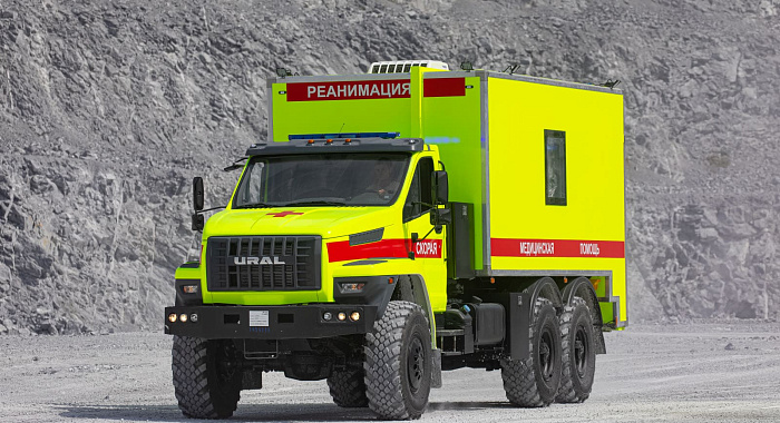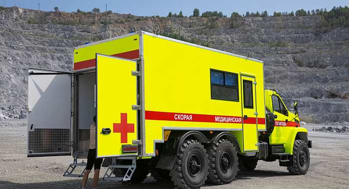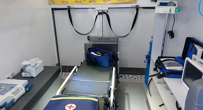 Первый в России автомобиль – реанимация на грузовом шасси. Машина оснащена по классу "С" и позволяет оказывать помощь больным прямо во время движения. Реанимобиль абсолютно автономен и позволяет проводить реанимационные мероприятия независимо от доступности инфраструктуры и от каких-либо других внешних условий. Фургон скорой изготовлен из 5слойных сэндвич-панелей собственного производства по бескаркасной технологии, именно такая технология обеспечивает прочность, безопасность и морозоустойчивость автомобиля. Благодаря этому машина может эксплуатироваться в любых климатических условиях