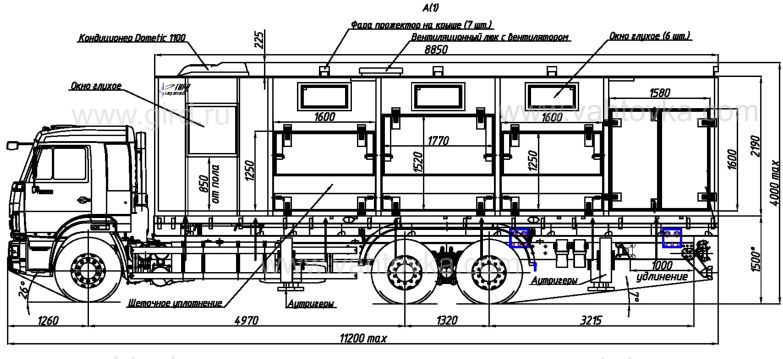 | 19. | Фара-прожектор (на крыше фургона, 3 шт. - по правой стороне, 3 шт. - по левой стороне, 1 шт. сзади) | 7 шт. |