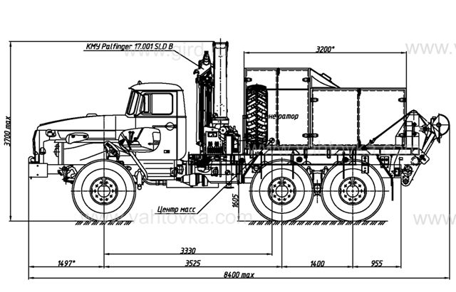 Крано-манипуляторная установка РК 17.001SLD B с поворотными аутригерами. (цвет КМУ зеленый) |