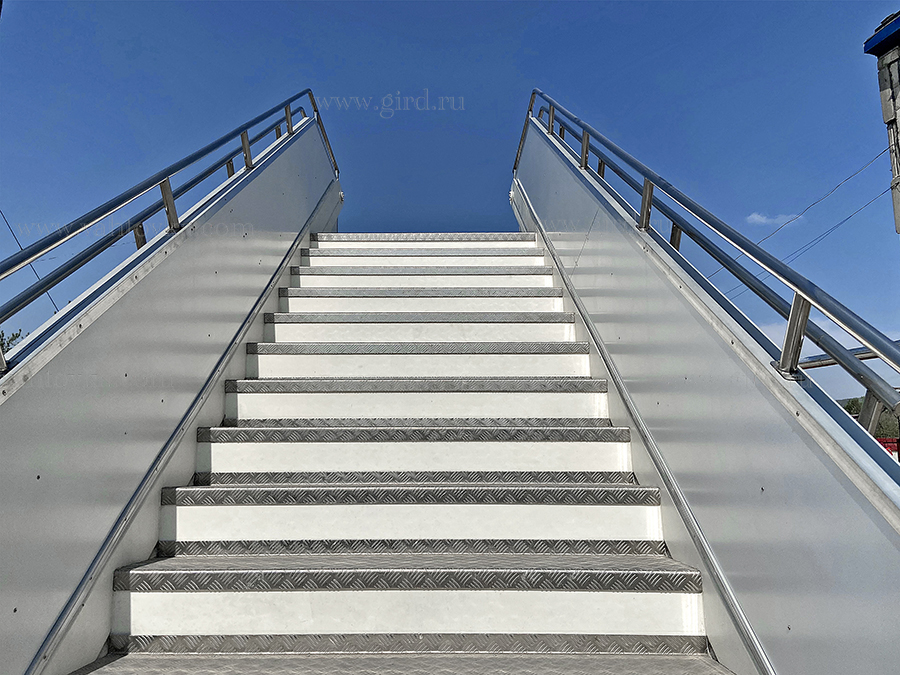 Трап самоходный пассажирский ТСП-ГИРД представляет собой раздвижную телескопическую лестницу, с ходом выдвижной лестницы до 4 метров 32 см, с поручнями и поворотно-выдвижной площадкой. Угол наклона лестницы 35 градусов, что является идеальным наклоном для комфортного и безопасного перемещения пассажиров. Для защиты от неблагоприятных погодных условий, таких как дождь или снег, трап оборудован галереей над лестничным пролетом, с навесом над верхней площадкой.