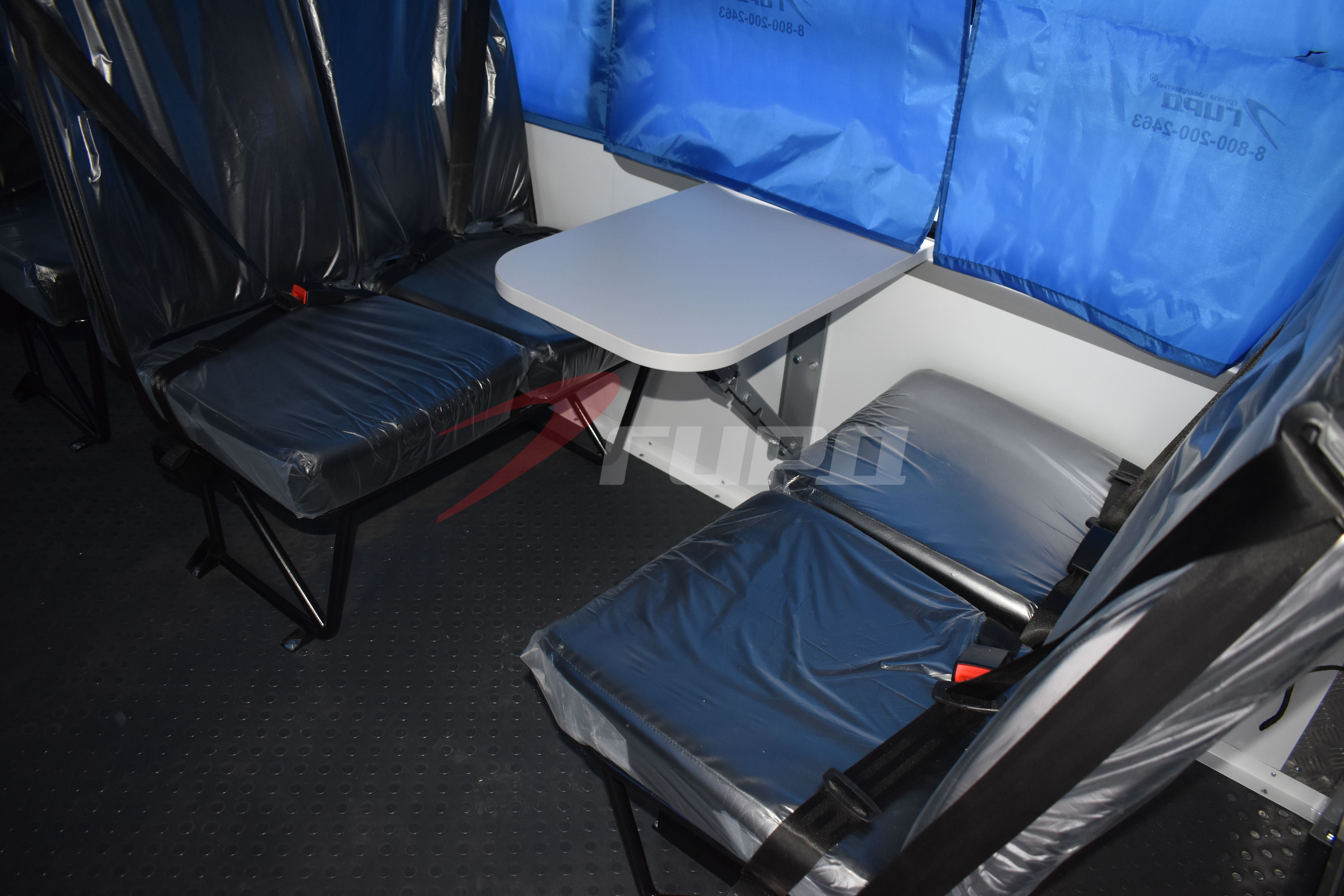 В фургоне установлена необходимая отопительная система, для комфортной транспортировки людей в холодных климатических условиях