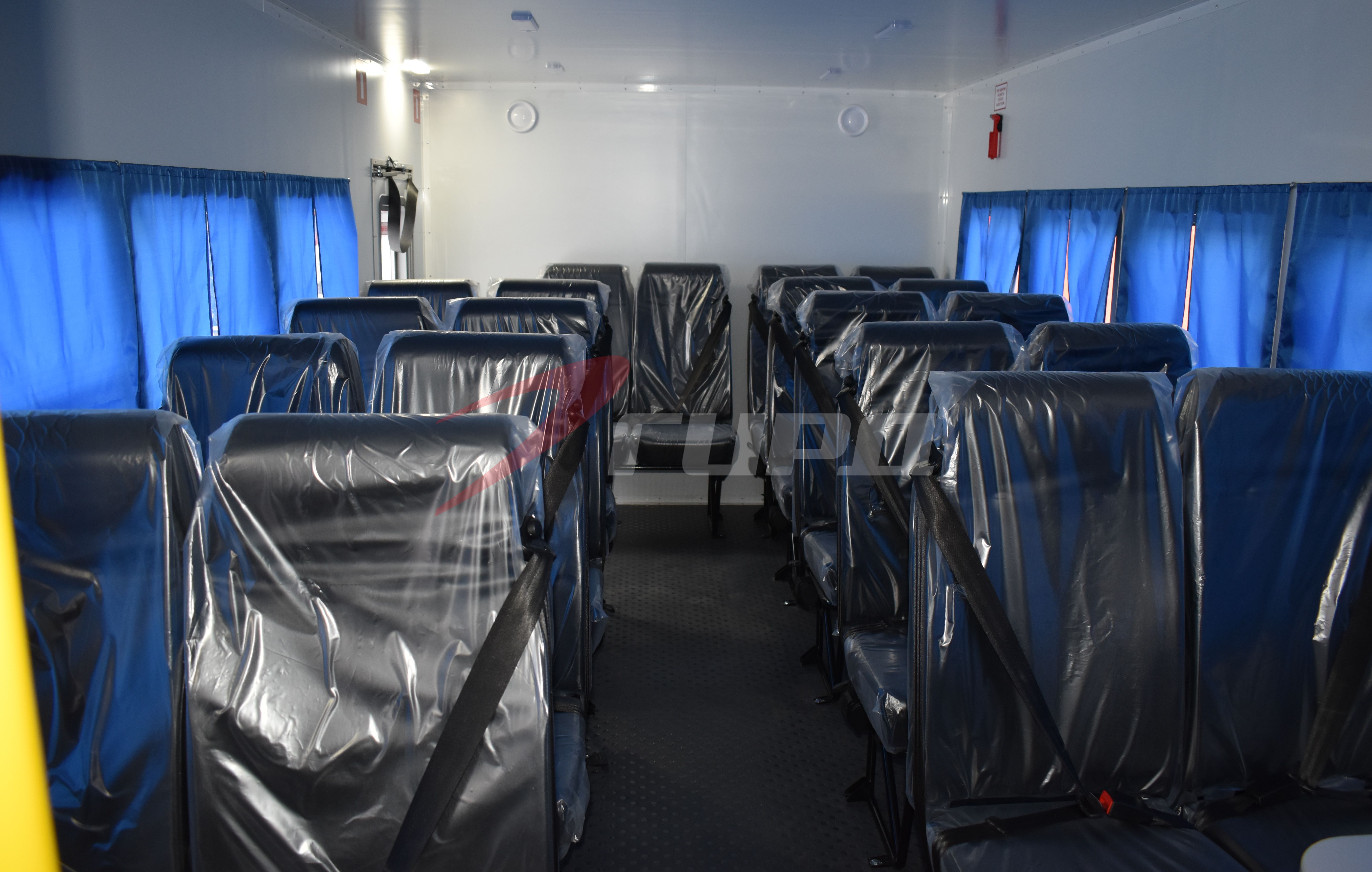 · Установлено 22 сидения с ремнями безопасности и откидной столик.