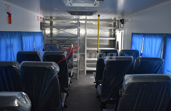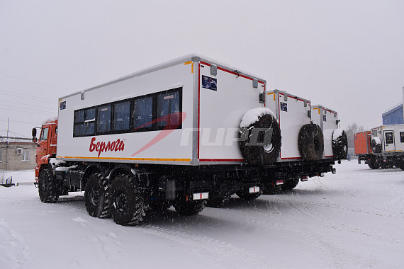 Для заказчика из Сахалина заводом спецтехники ГИРД было изготовлено и отгружено 10 вахтовых автобусов БЕРЛОГА 22 места с багажным отсеком на шасси КАМАЗ 43118.