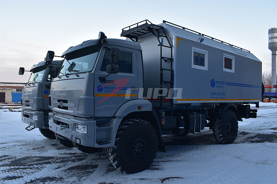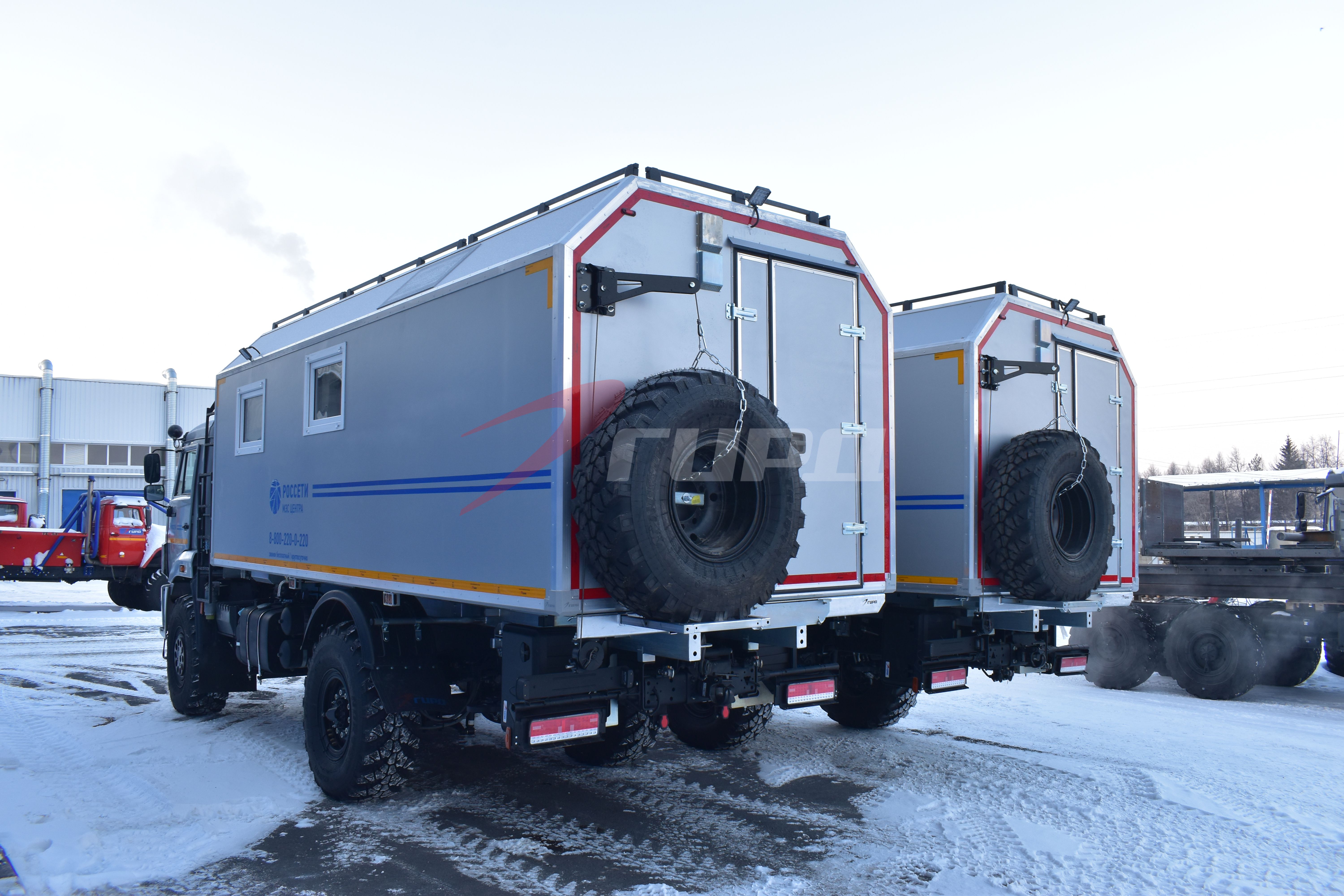 2 передвижные мастерские на шасси КАМАЗ 43502 были изготовлены для крупного заказчика из России