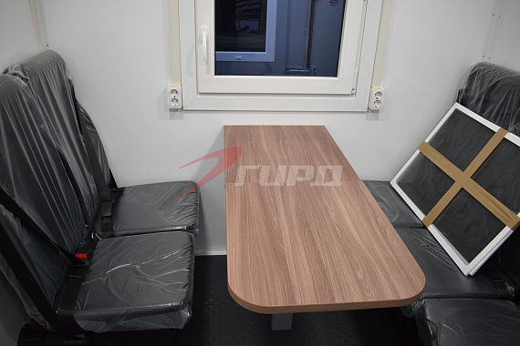 - Пассажирский отсек оснащен пятью сидениями и откидным столом