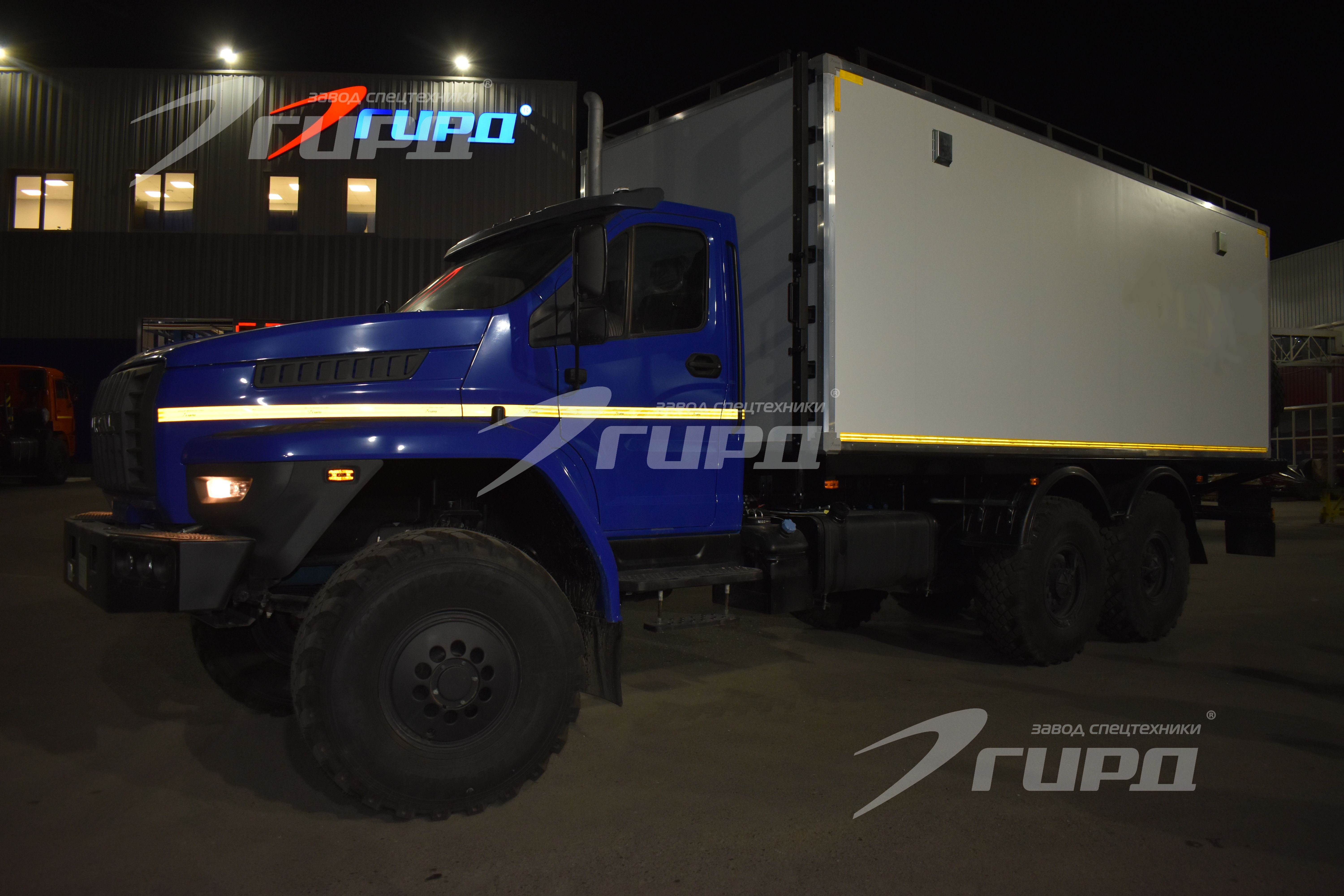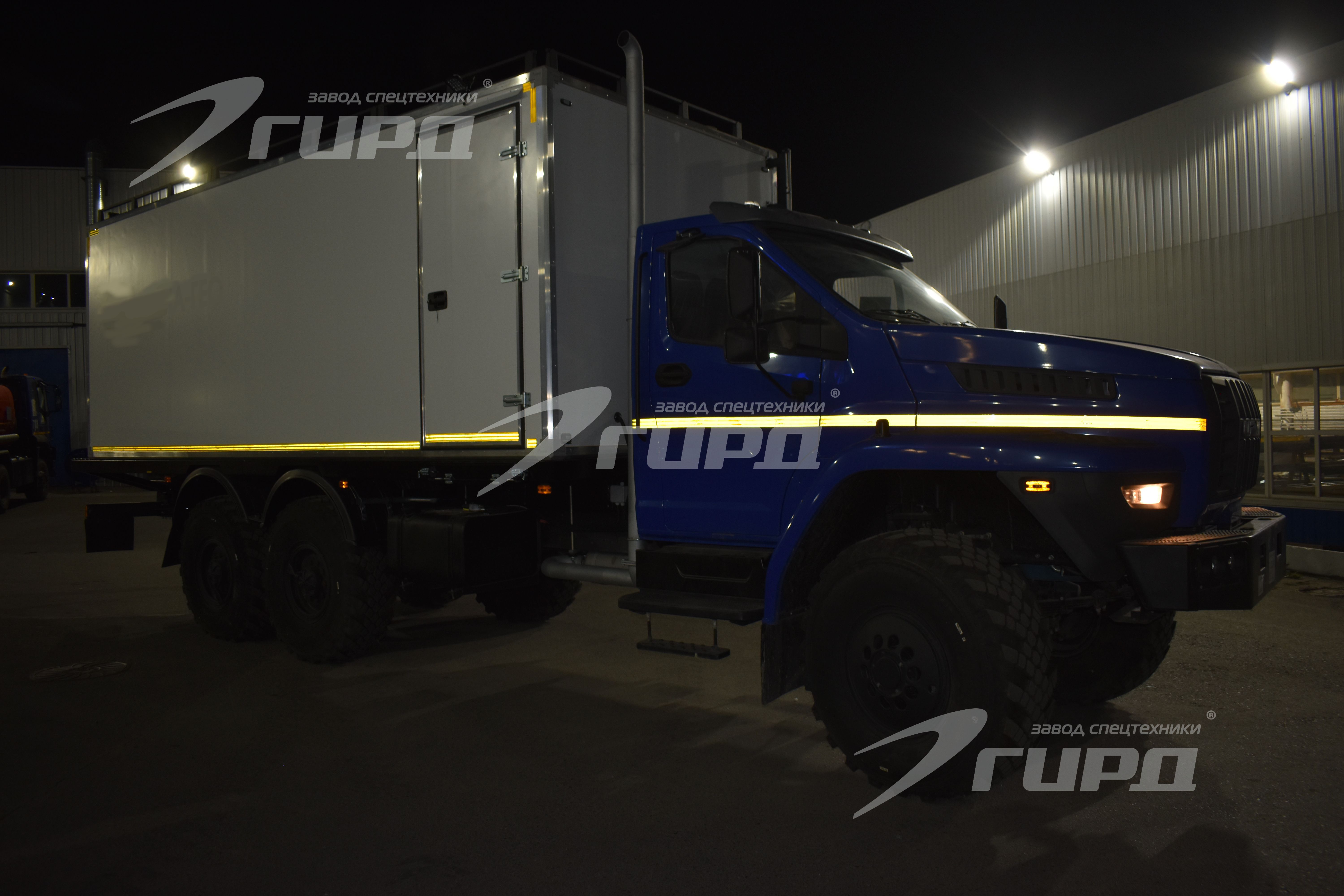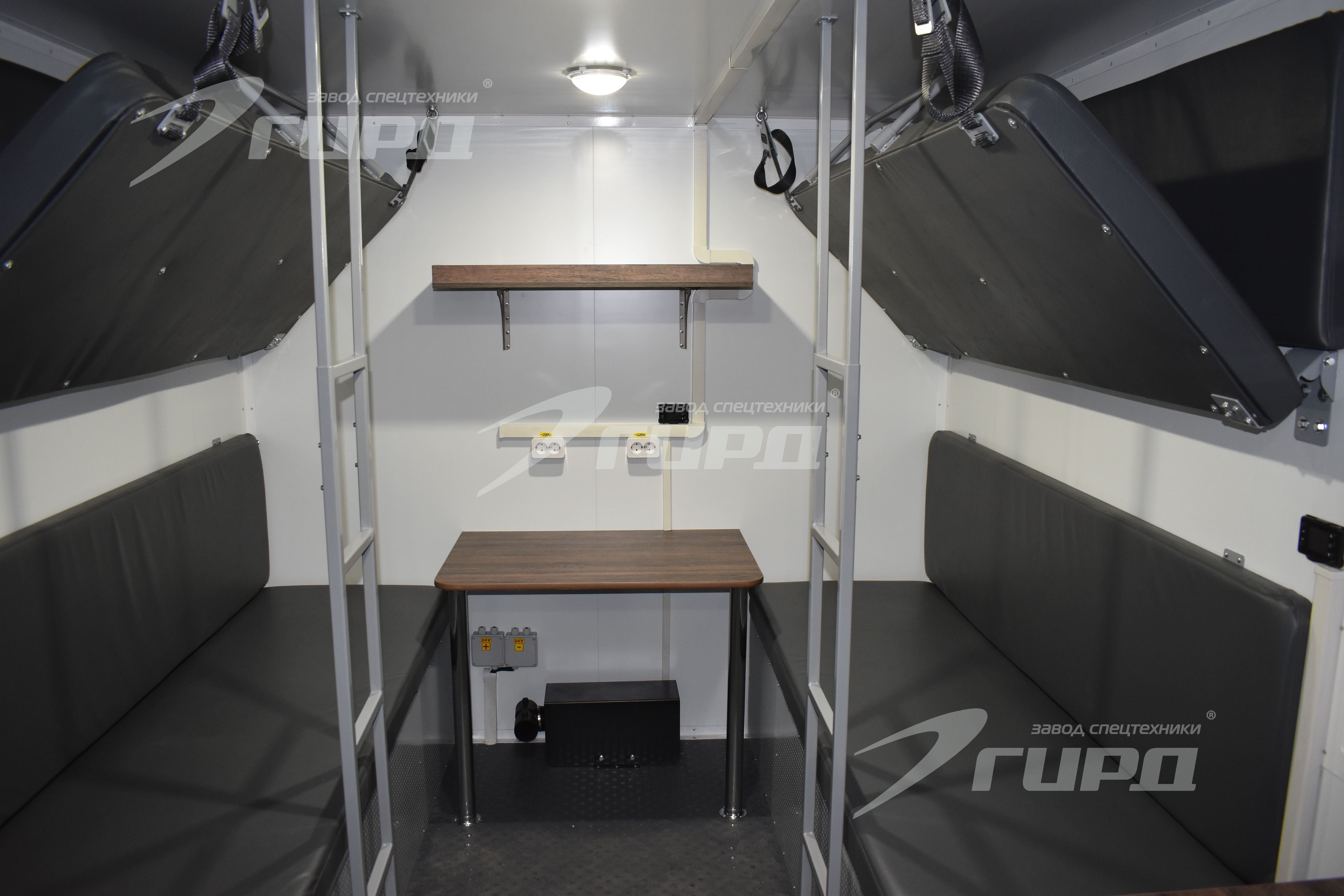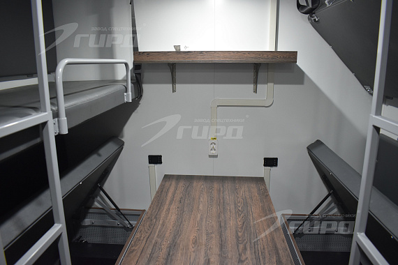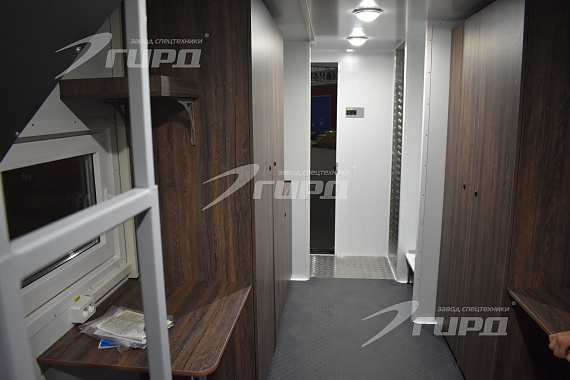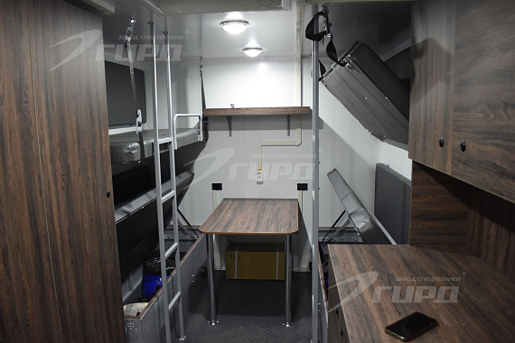 Второй автомобиль: имеет один большой бытовой отсек с диванами и спальными полками, местом для приготовления и принятия пищи, раковиной с подачей холодной и горячей воды, большими шкафами для хранения личных вещей и инструментов. В автомобиле предусмотрена душевая зона.