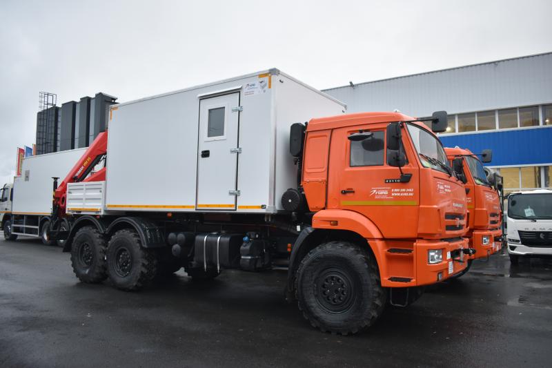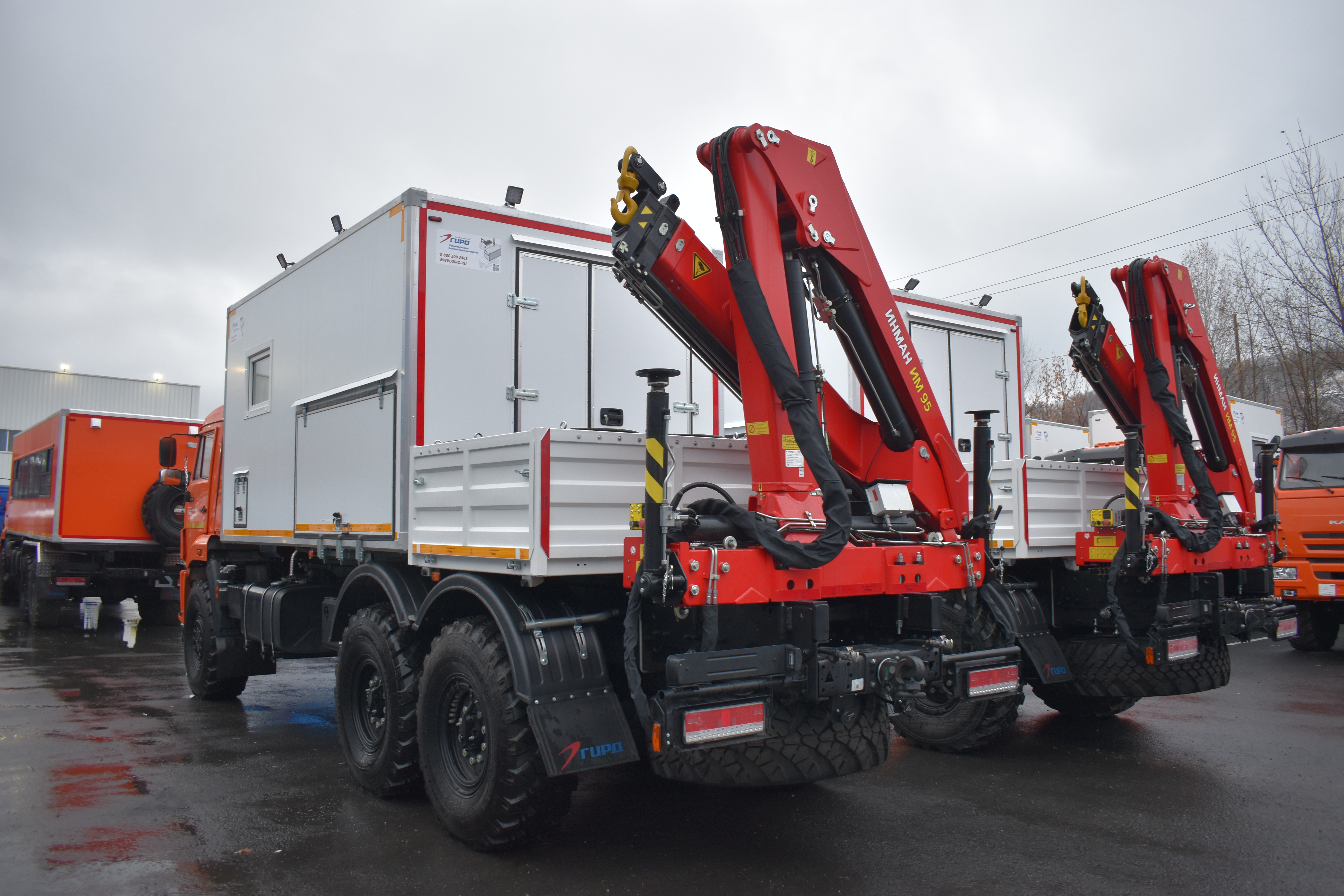 Для заказчика из города Сахалин было изготовлено две передвижные мастерские с КМУ ИМ-95 на базе шасси КамАЗ 43118-23011-48.