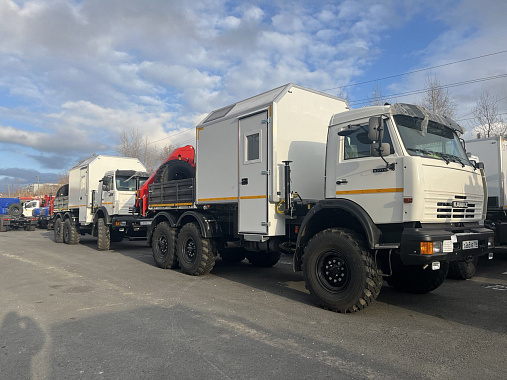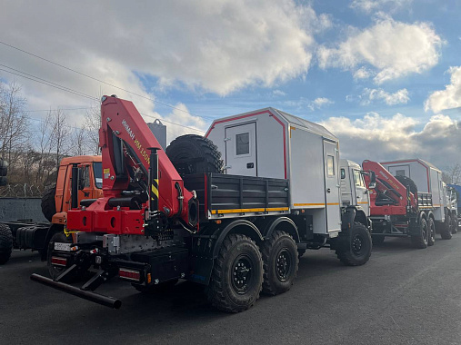 2 передвижные мастерские с КМУ ИМ-150 N были отгружены для корпоративного заказчика завода ГИРД. Автомобиль служит для комфортного пребывания рабочих бригад, а так же оборудован местом для реализации ремонтных работ. Наличие КМУ позволяет осуществлять самостоятельную погрузку и выгрузку.