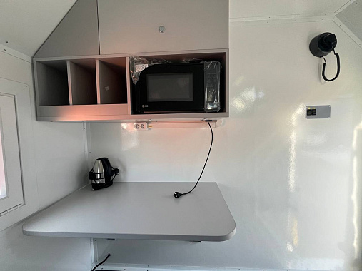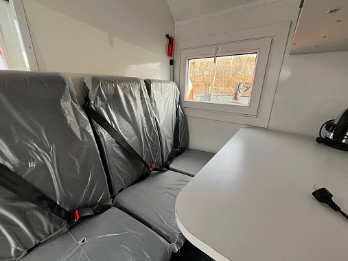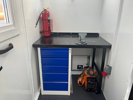 Фургон разделен перегородкой на рабочий и пассажирский отсеки. Пассажирский отсек оборудован тремя сидениями, складным столом, микроволновой печью, электрическим чайником и навесными ящиками (установлена ручка-кнопка, которая не позволяет ящикам открываться при движении автомобиля). В ремонтном отсеке установлен верстак с выдвижными ящиками, слесарным и сварочным оборудование. Наличие бортовой платформы для транспортировки груза.