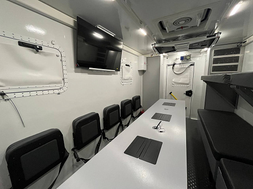 Командно-штабная машина органов гражданской защиты предназначена для обеспечения круглосуточной, автономной работы оперативного штаба, межведомственного взаимодействия с органами управления, надежной и бесперебойной работы в зоне проведения специальных мероприятий, ликвидации чрезвычайных ситуаций, катастроф, стихийных бедствий и их последствий.