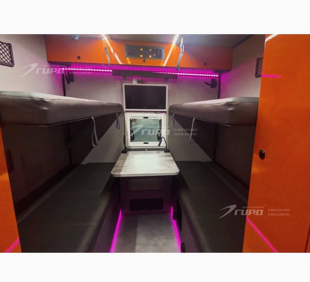 • 2 дивана трансформера, которые раскладываются в двухъярусное спальное место (всего 12 спальных мест в автомобиле)