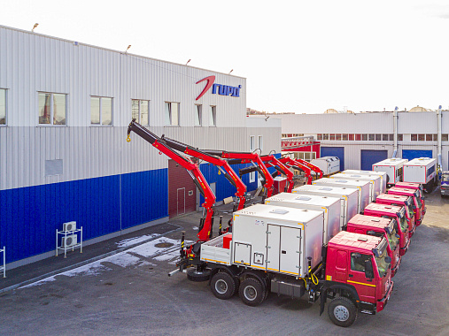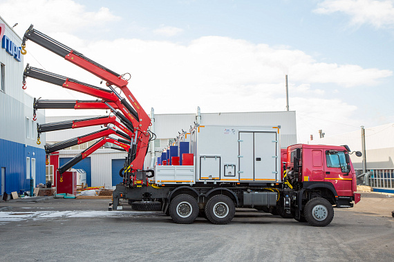 Специалисты завода ГИРД продолжают активно заниматься переоборудованием старых автомобилей. Для заказчика из Московской области, для эксплуатации по всей России, было переоборудовано 7 автомобилей. На шасси HOWO были установлены передвижные мастерские с КМУ ИМ 180.
