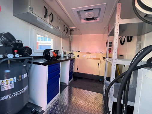 Фургон мастерской имеет один рабочий отсек (без перегородок); размеры фургона: 3250х2500х2190 мм.