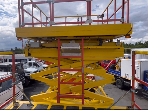 2. Механизм подъема и опускания платформы ножничного типа с гидравлическим приводом, оснащенным гидрозамками, предотвращающими опускание рабочей платформы при выходе из строя элементов гидравлической обвязки.