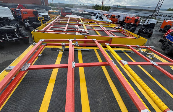 9. Рабочая платформа имеет надежную фиксацию в транспортном положении, а также устройство визуального контроля фиксации и сигнализации отклонения рабочей платформы от среднего положения