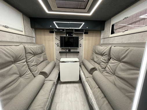 Поддержанием комфортной температуры внутри фургона занимаются кондиционер, два автономных отопителя и тосольный отопитель от автономного котла.