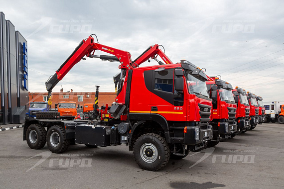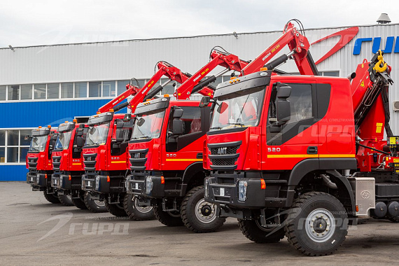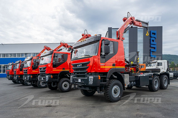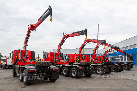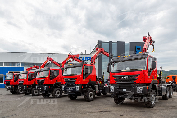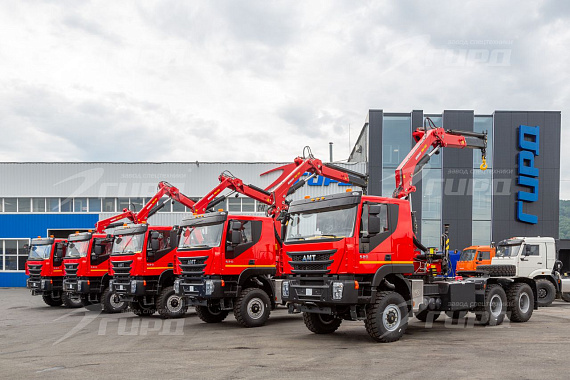 6 единиц спецтехники было отгружено корпоративному заказчику завода ГИРД Седельные тягачи на шасси АМТ с КМУ ИМ 180: - Управление с земли - Опоры поворотные - Грузовой момент 17,85 тм. - Макс.грузоподъемность 8800 кг. - Макс. вылет стрелы 8,02 м. - Грузоподъемность на макс. вылете 2170 кг.