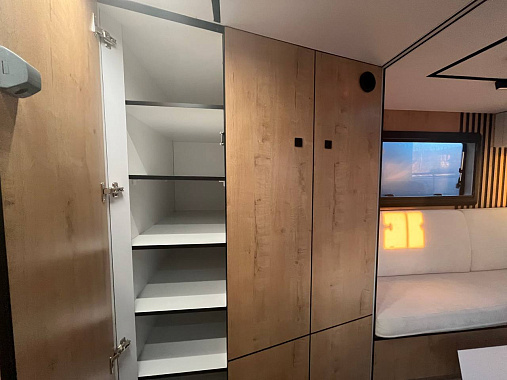 Зоны хранения установлены во всех отсеках, предусмотрен шкаф с сушкой для одежды.