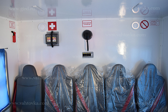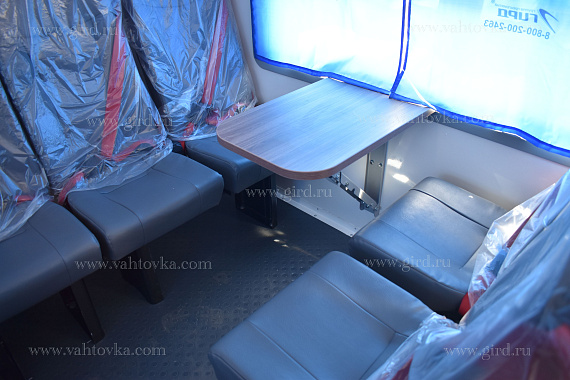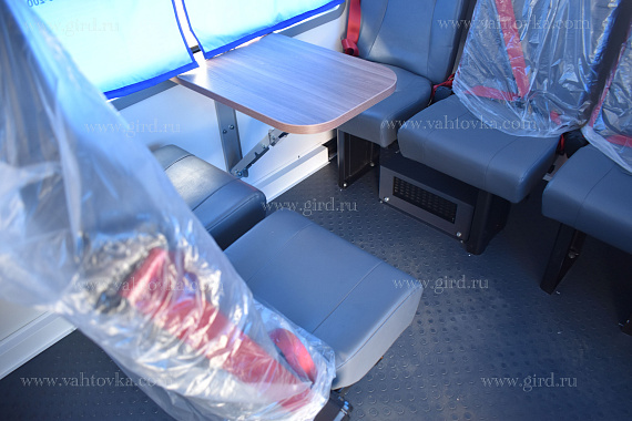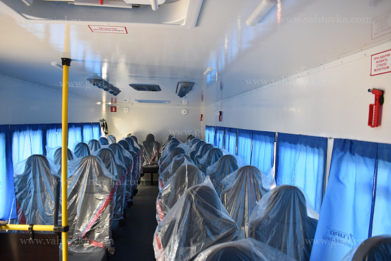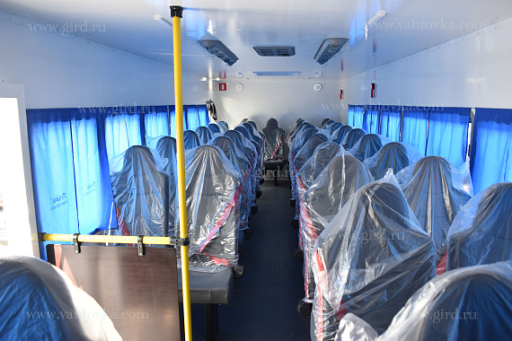 Каждый автобус рассчитан на 42 пассажира, для их комфортного размещения установлены сидения с трехточечными ремнями безопасности и 2 откидных стола.
