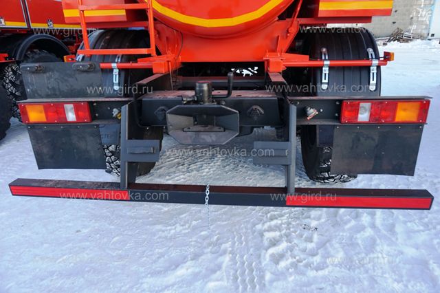 Три равных отсека, 3 заливные горловины, сливная магистраль с каждого отсека выведена на правую сторону по ходу движения автомобиля с запорным вентилем на ДУ-50 |