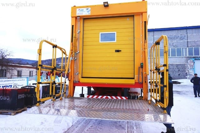 Ограждения передвижной площадки подвижные и при подъезде к ВС устанавливаются в рабочее положение после открытия дверцы люка ВС. |