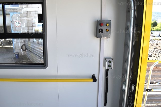 - Кузов оборудован подъемными дверьми спереди и сзади, изготовленными по роллетной технологии (секционные ворота), открывающимися вверх. Передняя дверь оборудована окном для обзора оператором места стыковки с воздушным судном.