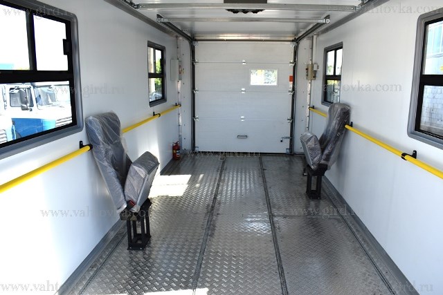 2. Кузов-фургон из сэндвич-панелей. Наружная и внутренняя отделка-плакированный металл. Оборудован откидывающимися креслами для персонала в количестве 2 (двух) шт. с ремнями безопасности, горизонтальными поручнями, для удобства пассажиров.