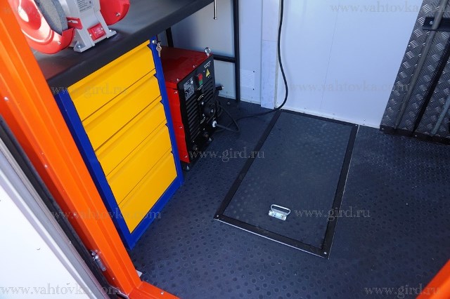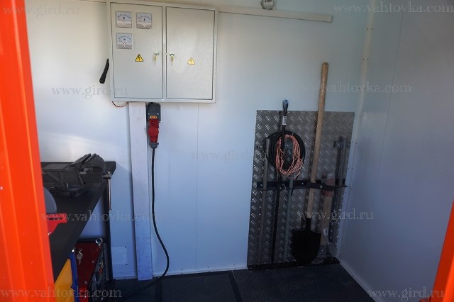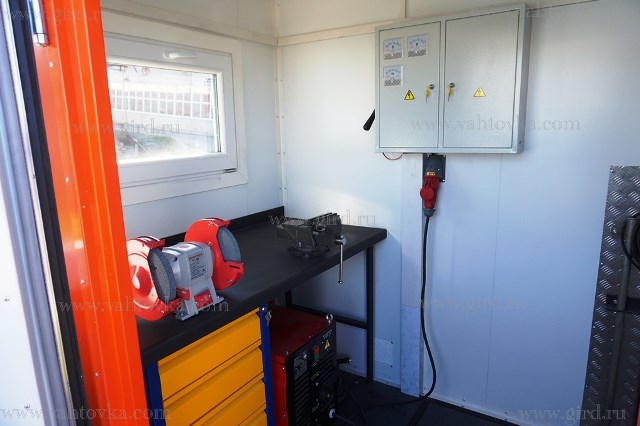 Электрошкаф в комплектации: Амперметр, вольтметр, кнопки включения/выключения подвода электроэнергии от внешних источников к сварочному трансформатору |