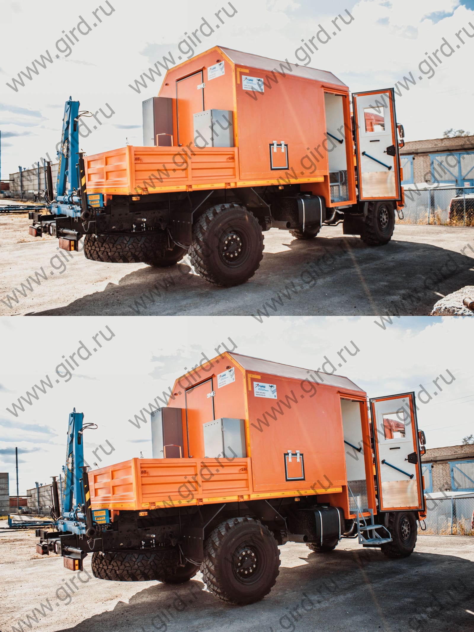 Жилое отделение автомобиля выполнено в виде фургона, имеющего термоизоляционное покрытие и отдельный вход в салон, а также располагающего шкафом для одежды и ящиком для хранения рабочего инструмента. Кроме того, в отсеке могут размещаться сверлильный и точильно-шлифовальный станки, сварочное оборудование, верстак для слесарных работ, установка для ремонтных и восстановительных работ, а также любое другое оборудование.