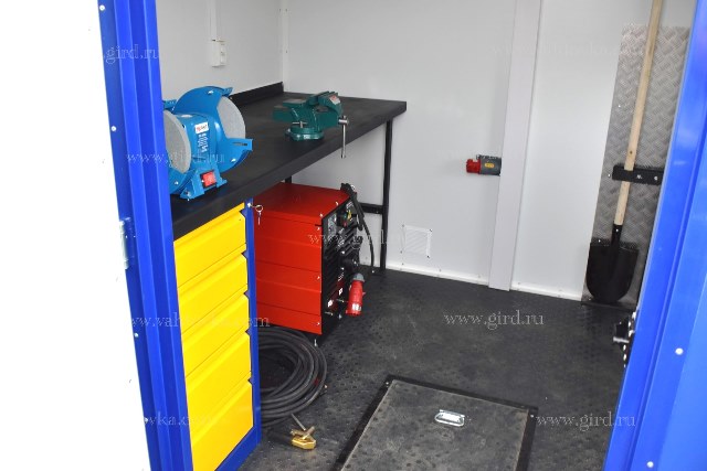 | 11. | Верстак однотумбовый с тисками (125 мм) и выдвижными ящиками (технологический отсек) | 1 шт. |