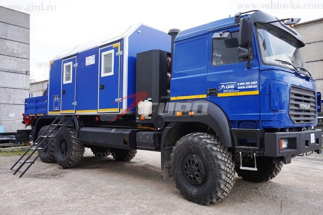 Платформа грузовая (цвет- синий, RAL 5002), с правым откидным бортом, с откидной ступенькой и скобой для облегчения подъема-спуска (или откидной лестницей с широкими рифлеными ступенями) |