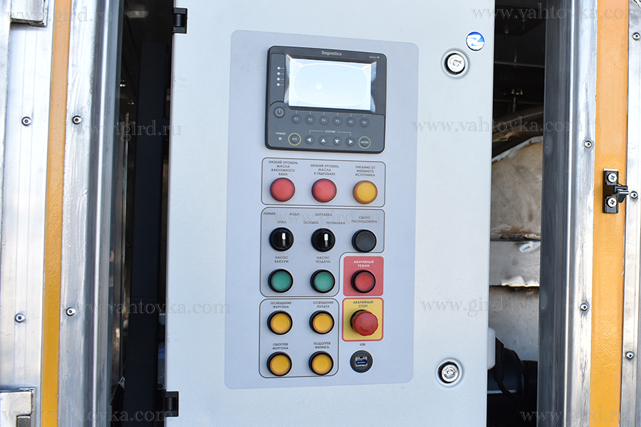 6. Кнопка аварийной остановки на пульте управления в кабине водителя и пульте управления технологическим оборудованием.