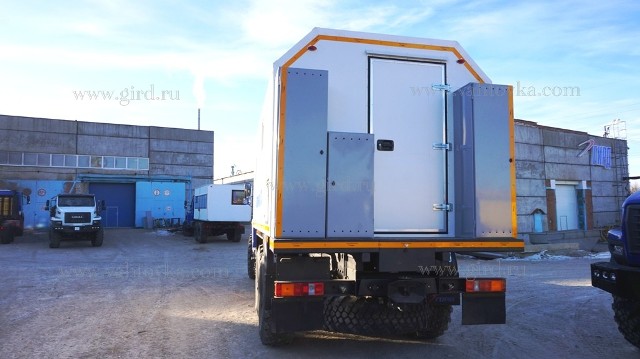 Кузов-фургон со скосами: из сэндвич-панелей толщиной 60мм. нижняя панель - 80мм. Цвет- белый RAL-9003 |