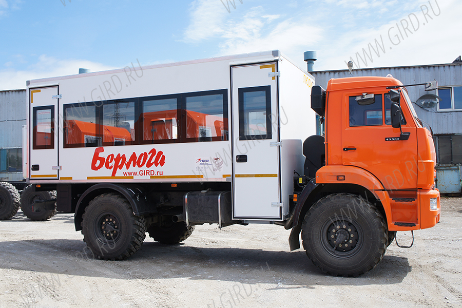 22 местный Вахтовый автобус "БЕРЛОГА" КамАЗ 43502-3036-42, шасси 4х4.