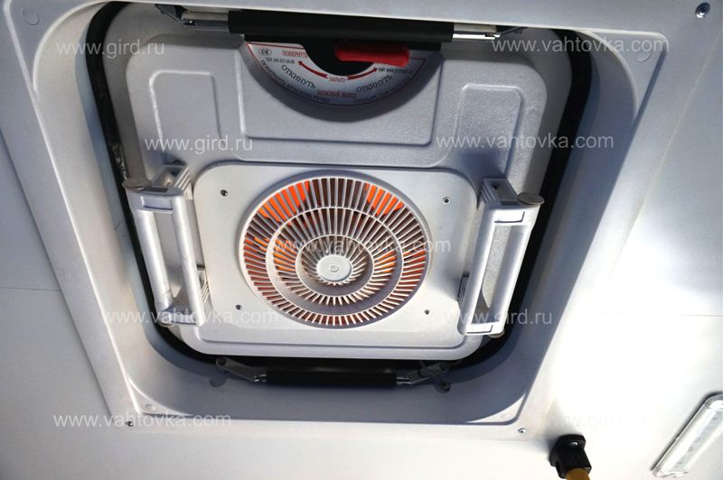 Дверь входная с окном (оборудована качественным и надежным замком; окантована тройным контуром высококачественного уплотнителя) с заниженным входом, оборудована откидной алюминиевой лестницей с дополнительным ремнем для удобства поднимания в салон, дверь с фиксацией в открытом положении. |