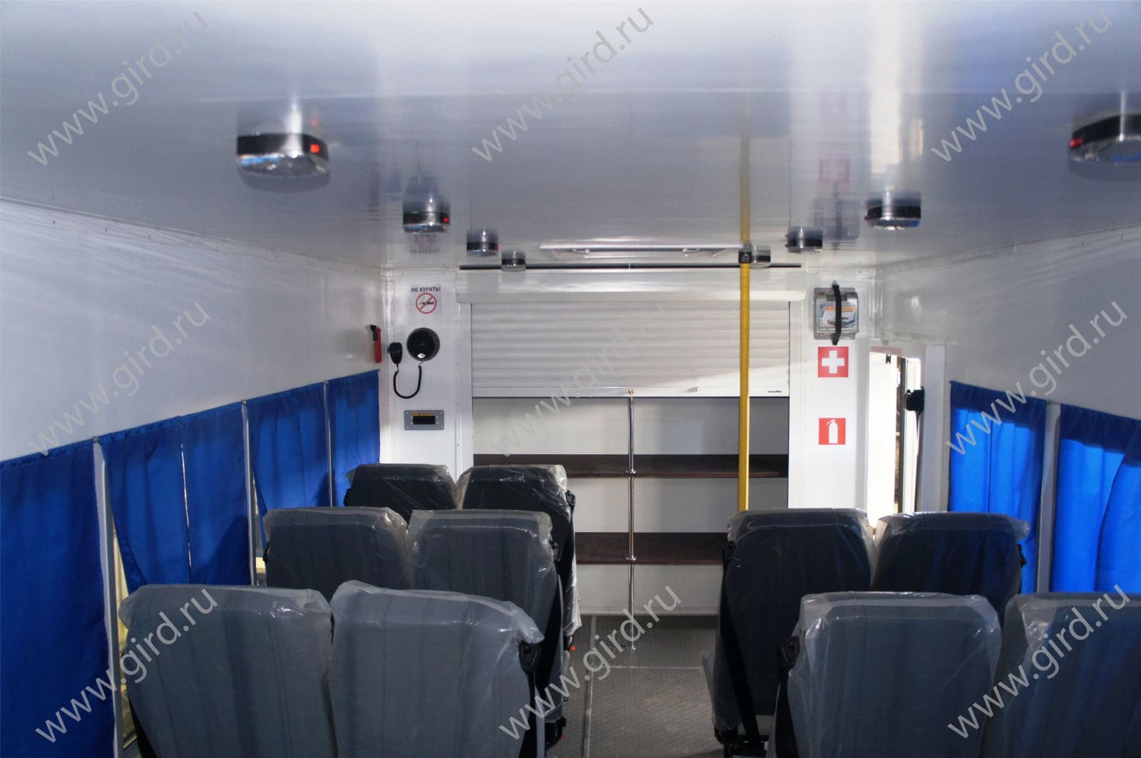 Вахтовый салон изготовлен из пятислойных сэендвич панелей собственного производства. В салоне установлены 26 комфортабельных кресла. Для поддержания комфортной температуры в салоне используются: независимый контур- Планар 4Д, и зависимый - тосольная печь. Для обеспечения вентиляции в салоне применен люк в крыше с турбовентилятором. Так же предусмотрено отдельное место для перевозки багажа в передней части салона, отделенное рольставнями.