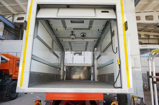 - наличие механизма подъема площадки с гидроприводом, для подъема грузов с уровня земли до высоты пола фургона