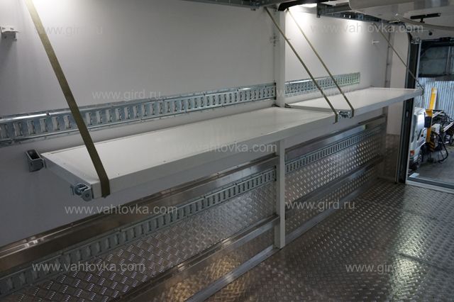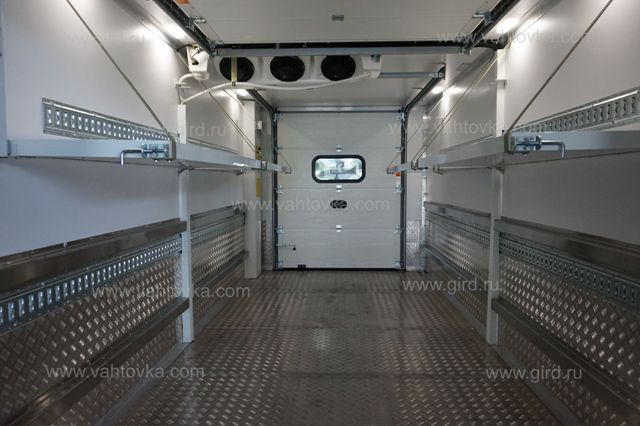 - наличие стационарного обогрева/охлаждения внутреннего отсека фургона с поддержанием температурного режима от 0⁰С до +12⁰С (в соответствии со стандартом ATP), климатическая установка ТермоКинг; - покрытие пола: металлические листы с насечкой (алюминиевые, нескользящее); - наличие внутреннего освещения отсека и наружного над каждой дверью; - наличие дренажа в полу; - двери изотермические спереди и сзади. Размер фургона: - длина: 5100 мм - ширина: 2300 мм - высота: 2100 мм - наличие крепежа для груза по боковым стенкам; - наличие дополнительных полок в кузове; - наличие дополнительных отбойников слева и справа в кузове; - наличие дополнительной рейки для крепления телег; - наличие проблескового маяка оранжевого цвета над передней дверью; - наличие стандартного оранжевого маячка под кузовом для контроля работы гидравлической системы; - наличие четырех красных фонарей по углам кузова; - наличие предупредительной системы при движении задним ходом, включающей акустическую систему предупреждения и желтый маячок; - наличие пульта управления спецоборудованием; - доступ в кузов сзади – с помощью лестницы с поручнями.