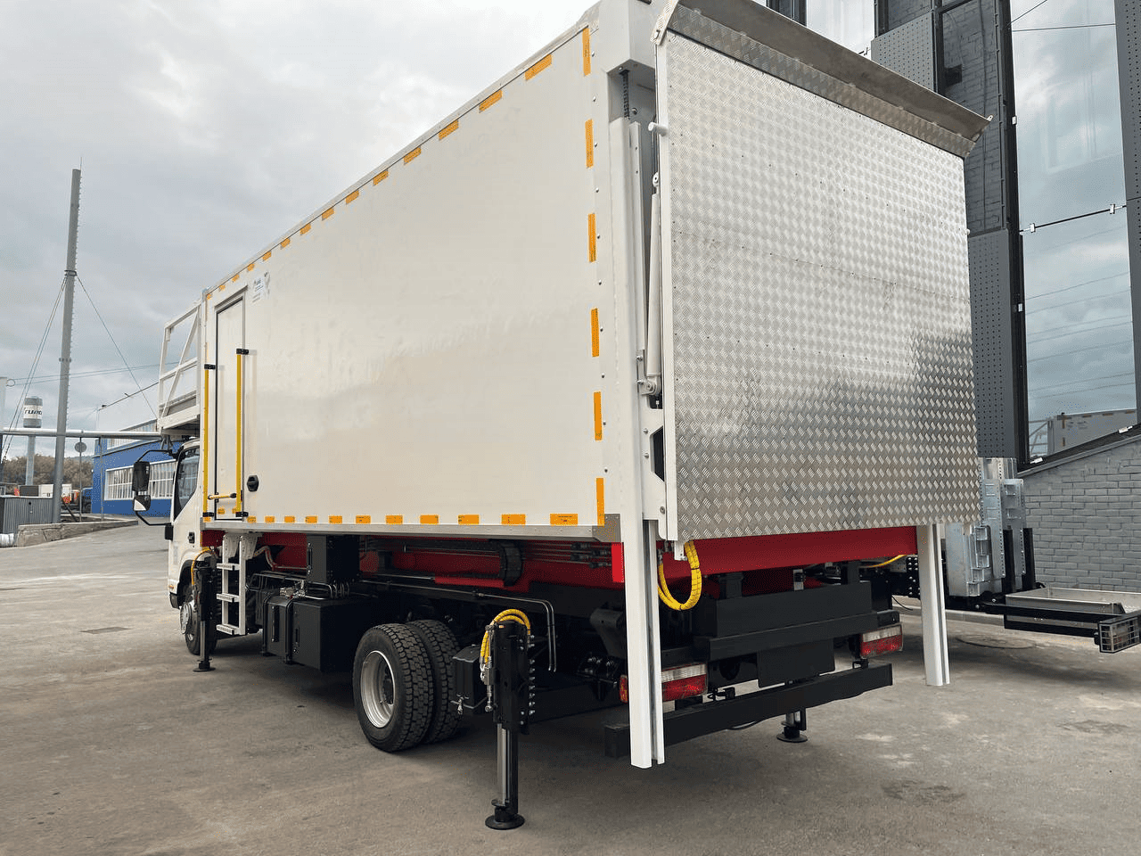 Возможность контроля положения фургона и аутригеров, наличие светового оповещения/индикации, движение автолифта возможно, если горят лампы зеленого цвета.