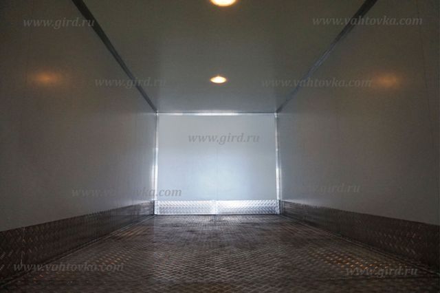 - задние распашные двери, с фиксацией на фургоне в открытом положении. - на дверях по одному штанговому запору поворотного типа из оцинкованной стали; каждая створка крепится на 3-х петлях из оцинкованной стали. - задний противооткатный брус - пластиковые крылья с брызговиками - утопленные плафоны внутреннего освещения фургона (вкл./выкл., при открывании дверей, от концевого выключателя станочного типа) - боковая защита - отбойная полоса - отбойная полоса - алюминиевый лист на нижней части внутренних боковых стенок, дверей и передней стенки высотой 300 мм. - ванна - установка фургона на давальческое шасси |