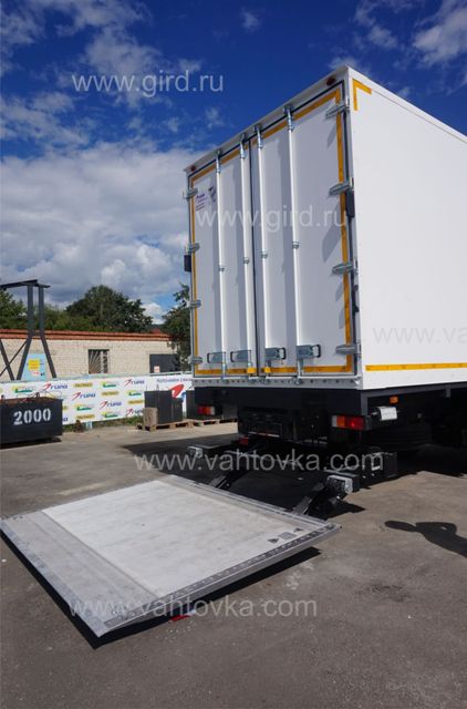- задние распашные двери, с фиксацией на фургоне в открытом положении - на дверях по два накладных штанговых запора поворотного типа из оцинкованной стали; -каждая створка крепится на 4-х петлях из оцинкованной стали; - роликовые резиновые отбойники для предотвращения ударов -пластиковые крылья задней оси, противоподкатный брус и боковая защита - контурные огни - установка фургона на шасси -установка гидроборта Bar Cargolift bc 2000s4 |