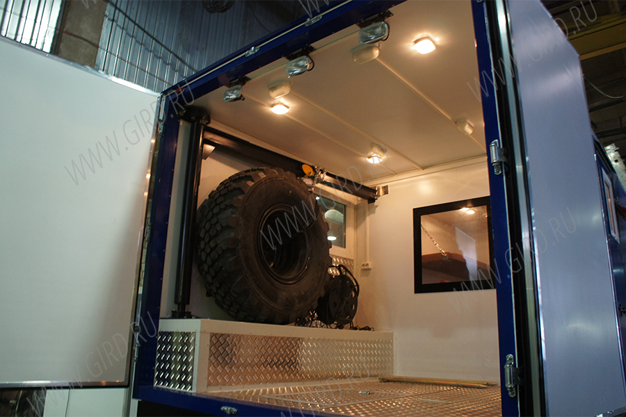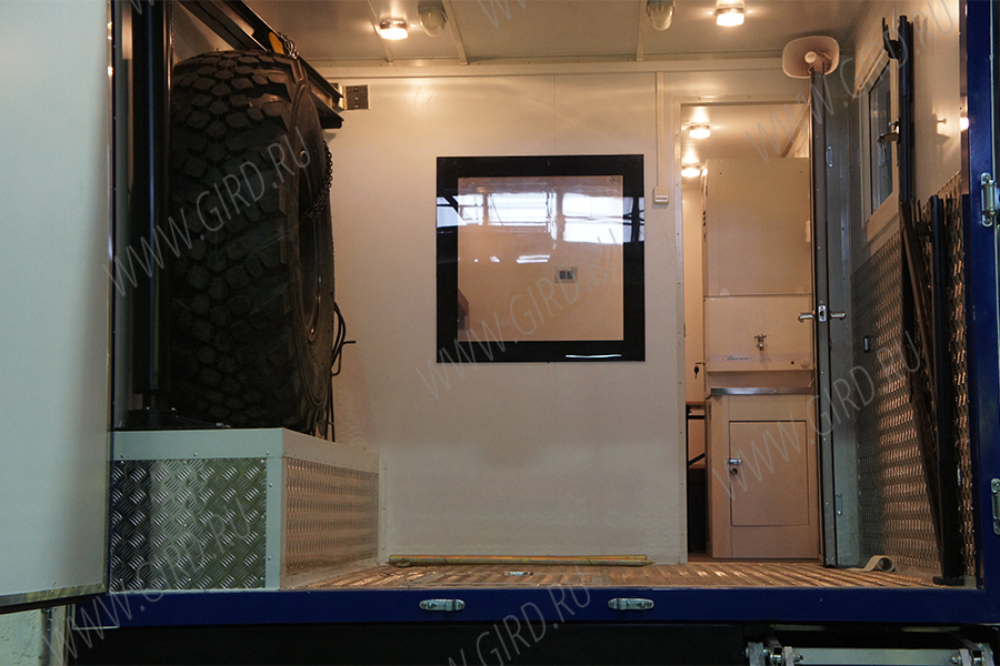 Кузов лаборатории представляет собой изотермический фургон, предназначенный для проведения геофизических работ. Кузов разделен на два отсека: отсек оператора и бытовой отсек. Между отсеками устанавливается дверь.