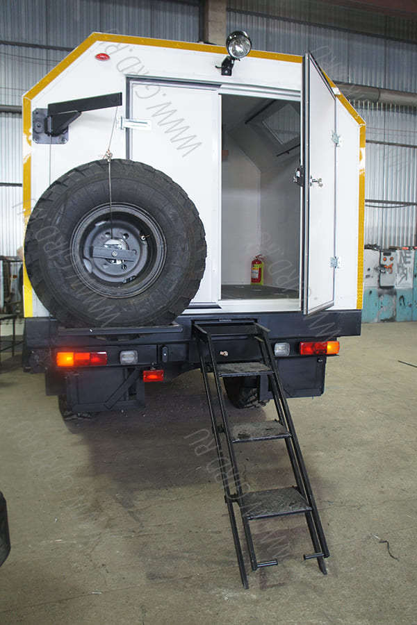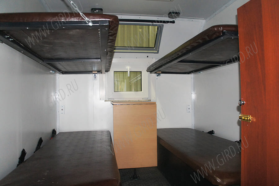Надстройка: фургон изотермический S=60 мм, отсек для проживания 4х человек, грузовой отсек.