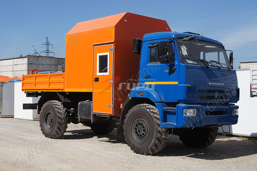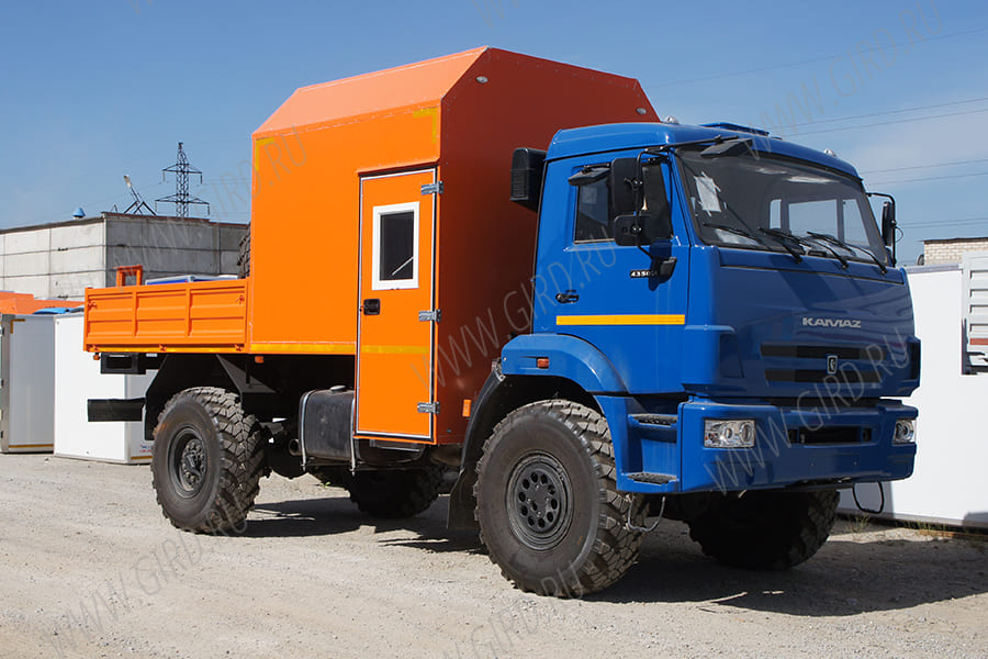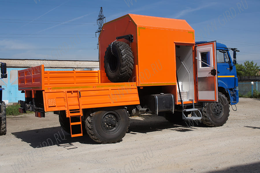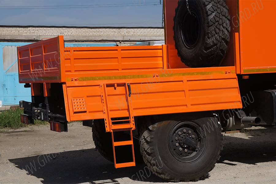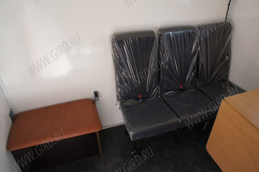 Автобус грузопассажирский ГПА (кунг со скошенными верхними углами, кол-во посадочных мест в фургоне 6, полумягкие сидения с обтяжкой кож. заменителем, кунг с наружной отделкой плакированным коррозионно-стойким листовым металлом и внутренней отделкой износостойким пластиком, рундук 40х80 в кунге, усиленная конструкция стола - ножки и крепления к стенке, вешалка, полимерное покрытие пола, пластиковые окна с форточкой, салон с пониженным уровнем пола входного отсека, откидная ступень с двусторонними поручнями во входном отсеке с функцией-подъема и опускания изнутри и снаружи, нижняя половина двери кунга изнутри отделана нержавеющим листовым металлом, кунг с термоизоляцией и двойным остеклением; отопитель кунга от системы охлаждения ДВС, дополнительный автономный отопитель кунга в защитном кожухе под сидением с подачей топлива в автономный отопитель от бака ТС либо обратной подачи ДВС, конструкция топливной магистрали ТС и автономного отопителя из жёстких трубок и РВД (шлангов); задний и правый борт откидной, раскладная лестница на правом борту, борта усиленные из рифлёного металла (не менее 1.5мм)