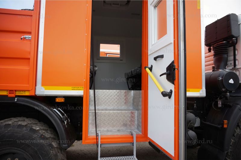 Дверь входная одностворчатая (в передней части правой панели кузова-фургона) с глухим окном двойного остекления c заниженным входом. Над дверью входа один плафон подсветки | 1 |