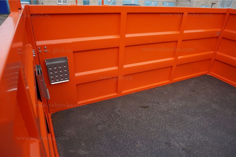 Кузов-фургон со скосами, изготовлен из «сэндвич» панели толщиной 60 мм по бескаркасной технологии, клепанный, с внутренними размерами 2200х2400х1900мм. Наружная обшивка – плакированный металл оранжевый RAL 2004 Внутренняя обшивка – плакированный металл белый RAL 9003 Покрытие пола – износоустойчивый линолеум типа «автолин». ДЗК на грузовой платформе. Цвет кузова-фургона и бортовой платформы оранжевый RAL 2004 | 1 |