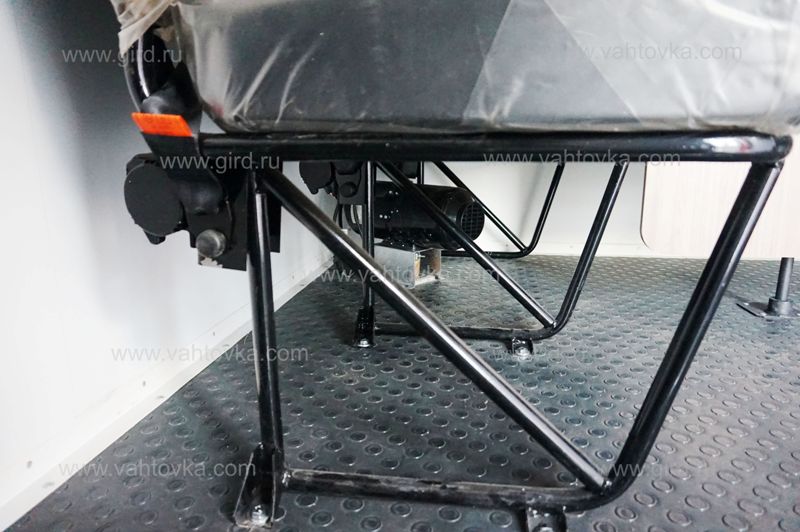 ДЗК в бортовой платформе с креплением к задней стенке фургона с укосиной и механической лебёдкой (для спуска-подъёма) |