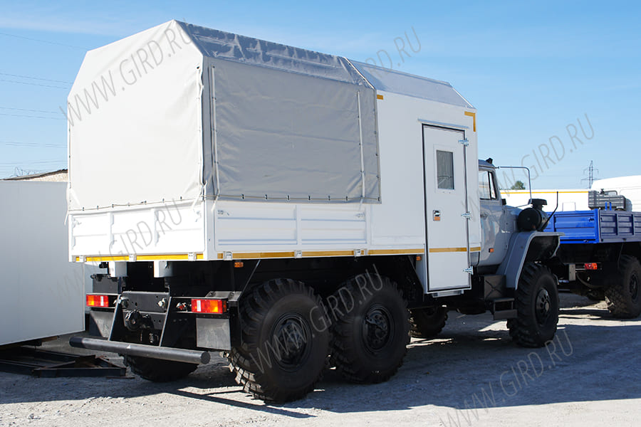 - Колесная формула 6х6 - Бортовая платформа с тентом Кабина на шасси Урал может быть доработана до сдвоенной кабины. |