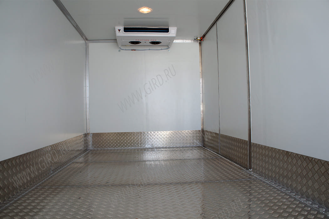 - задние распашные двери, с фиксацией на фургоне в открытом положении; - на дверях по одному накладному штанговому (труба оцинкованная с порошковой покраской) запору поворотного типа из оцинкованной стали; - каждая створка крепится на 3-х петлях оцинкованной стали; - задний противооткатный брус, резиновые отбойники; - внутреннее освещение кузова; - утопленные плафоны внутреннего освещения кузова (вкл./выкл., при открывании дверей, от концевого выключателя станочного типа); - пластиковые крылья с брызговиками; - отбойная полоса из оцинкованного листа на нижней части боковых стенок, дверей и передней стенки высотой 300 мм; - безопасный доступ в фургон (лестница); - алюминиевая боковая защита; |